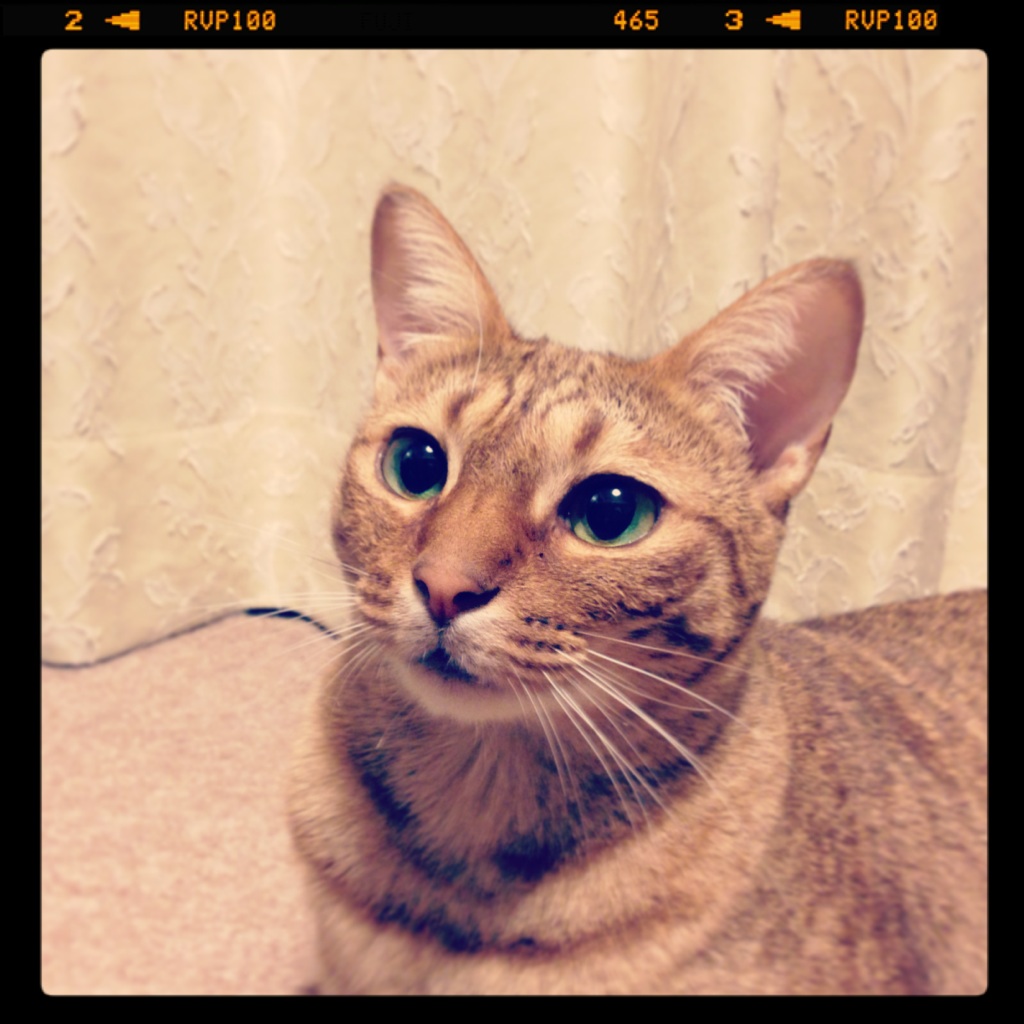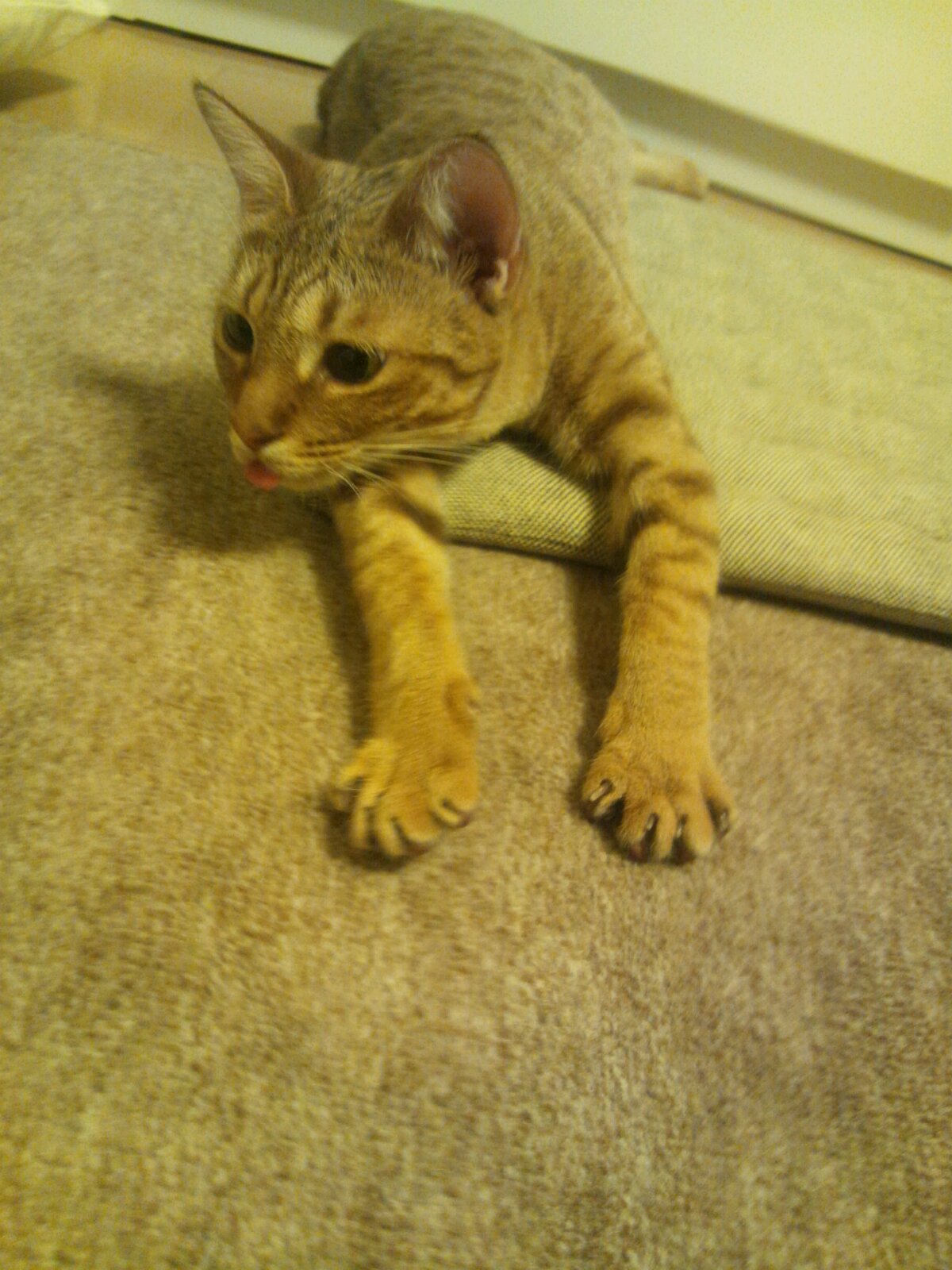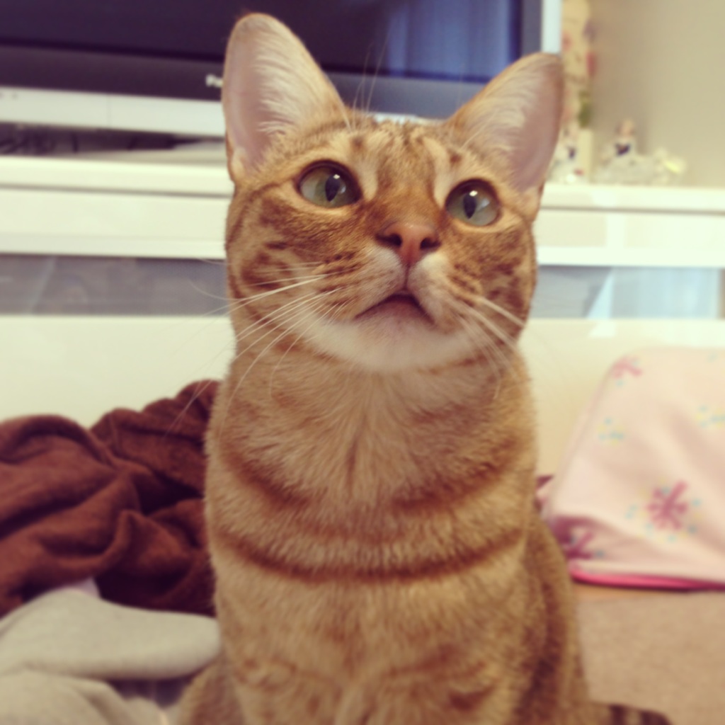 アビシニアン系の猫の声は小さいらしいですね…。にゃっにゃ、と短くめっちゃ小さく鳴きます。