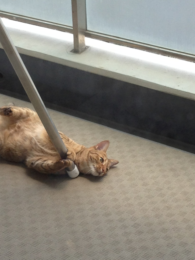 と珍しくよく鳴き、さらに床をゴロゴロ転がるのです。